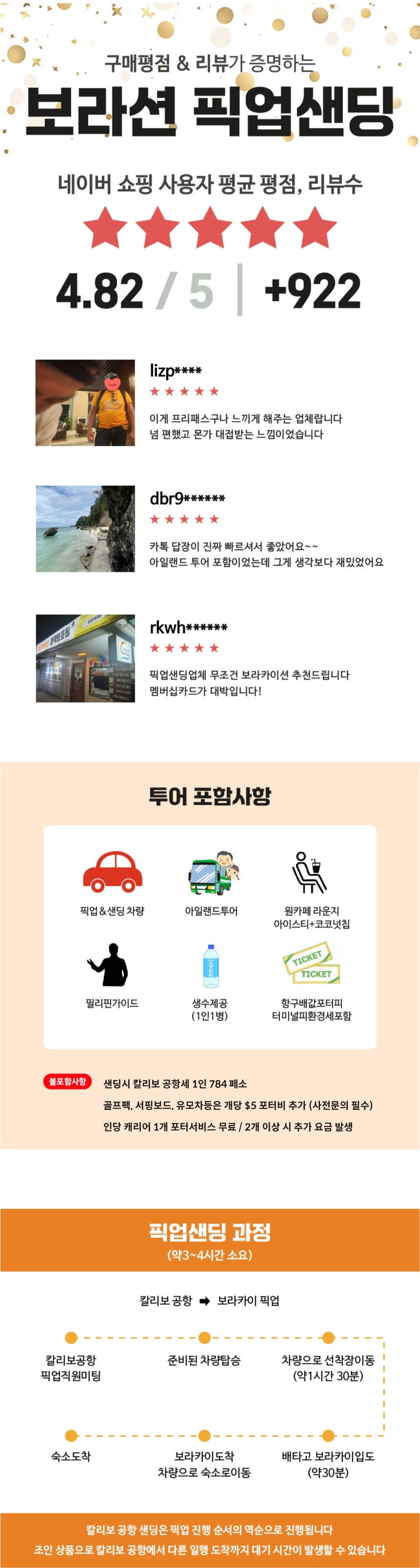 - 밤비행기 이용시 새벽에 보라카이로 이동하는 보트는 2~3대만 운영합니다. 보트나 선착장에서 대기 시간이 다수 발생할 수 있습니다
